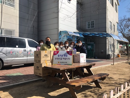 이날 방문은 사회적 거리두기 실천에 따라 비대면으로 시설 종사자를 위로하고 센터 입구에서 위문품을 전달했다.