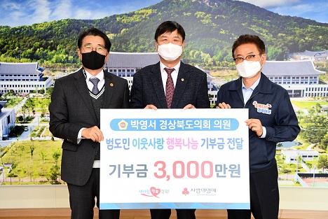 경북도의회 박영서 의원이 ‘범도민 이웃사랑행복나눔’ 기부금 3천만 원을 8일 경북사회복지공동모금회에 전달했다.