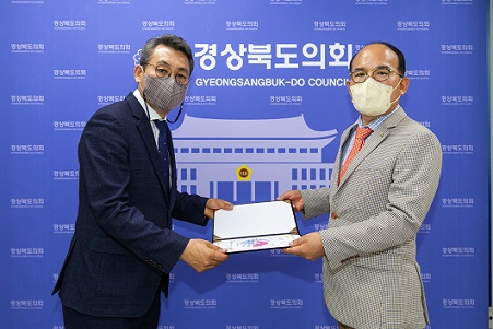 이번 수상은 지난 20일 한국장애인마이스협회 회의실에서 개최된 ‘제41회 장애인의 날’ 행사가 코로나19 방역지침 준수를 위해 최소한의 인원만 참석해 진행된 관계로, 한국장애인마이스협회 심만섭 이사장이 23일 경북도의회를 방문해 직접 표창장을 전달하게 되었다.