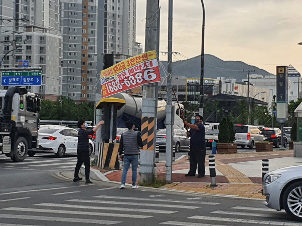 아파트, 오피스텔 등 반복적인 분양광고로 인하여 시민들의 보행안전을 해치는 불법현수막에 대하여 약 1,000여장의 현수막을 철거하였으며 주말에도 위탁업체와 함께 불법현수막 정비에 총력을 쏟았다.