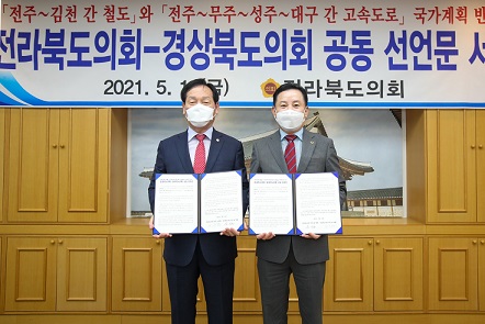 교통망 확충을 통한 동서간 인적, 물적 교류를 확대하기 위해 경북․전북도의회가 힘을 모아, 정부에 경북과 전북을 연결하는 SOC 조기건설을 강력히 촉구했다. 이에 따라 경북도와 전북도의 도로 인프라 확충에 한층 탄력이 붙을 전망이다.