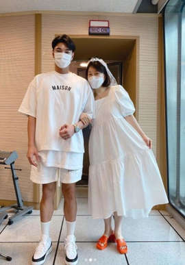 이민웅은 7월 28일 개인 인스타그램에 "오늘 어쩌면 이렇게 맞춰 입고 와가지고. 집안이 반대하는 결혼식했어요. 뽁뽁이 면사포에 노래방 책에 손 올리고"라는 글과 함께 사진을 게재했다.