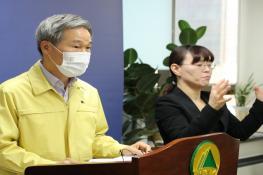 | 29일 채홍호 대구시 행정부시장이 오는 1일 단계적 일상회복 1단계 시행을 앞두고 대구시의 방역대책을 발표하고 있다./사진= 대구시 제공 |