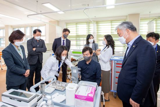 경상북도의회 교육위원회(위원장 조현일)는 1일 비회기 기간 중 정부의 단계적 일상회복 정책변화에 따라 학교현장 의정활동을 강화하고, 수요자 중심의 학습여건 조성을 점검하기 위해 예일메디텍고등학교(구 영문고) 현지확인을 실시했다.