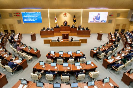 도의회는21일 지역대표성 강화와 도·농간 균형발전을 위한 광역의원 선거구 획정 방식 개선 촉구 건의안을 채택하고 있다/사진=경북도의회 제공