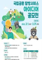 환경부 산하 국립공원공단(이사장 송형근)은 새로운 국립공원 탐방서비스를 발굴하기 위한 ⌜2022년 국립공원 탐방서비스 대국민 아이디어 공모전⌟을 1일부터 31일까지 31일간 실시한다고 밝혔다.