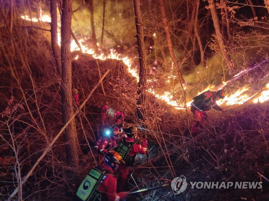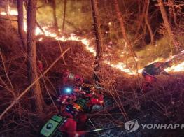 이에 산림 당국은 인력을 동시 투입해 산불이 민가 등으로 확산하지 못하도록 방화선을 구축했다.