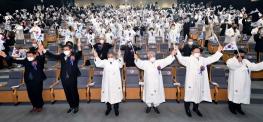 3․1절 노래와 만세삼창은 코로나19 상황임을 고려해 따라 부르거나 외치지는 않고 참석자 모두 자리에서 일어나 태극기와 독도기를 힘차게 흔들며 103년 전 제국주의 일본을 혼비백산하게 만든 선열들의 뜨거운 함성과 숭고한 뜻을 기렸다.