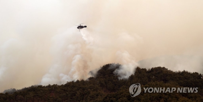 이에 당국은 초대형 헬기 2대 등을 더 투입해 군락지에 확산하는 것을 막는 데 사활을 걸고 있다.