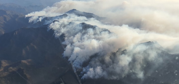 | 11일 오전 7시40분 기준 경북 울진 산불의 화세가 가장 강한 응봉산에서 불이 서쪽으로 확산중이다/ 사진=경북소방본부 제공 |