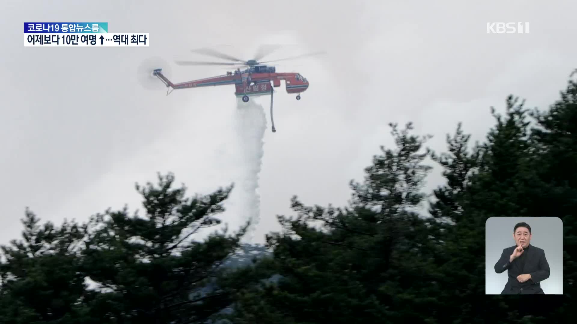 상공에는 진화 헬기 80대가 투입됐고 지상에서는 특수진화대와 특전사 등 360여 명이 투입돼 진화 작업을 벌이고 있다.