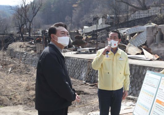 앞서 윤 당선인은 산불이 시작된 지난 4일 경북 영주 유세를 마친 뒤 울진읍 국민체육센터에 마련된 이재민 보호소를 방문, 주민들을 위로하며 빠른 피해 복구를 약속한 바 있다.