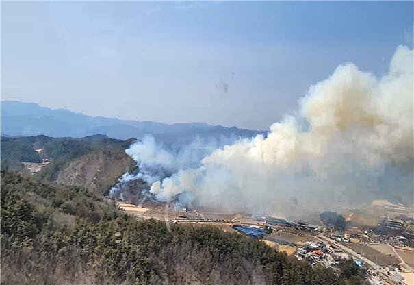 산림당국은 이날 오후 7시를 기점으로 ‘산불 3단계’로 격상하며 일몰과 동시에 야간진화체제로 전환했다. 현재 진화율은 70%이다.