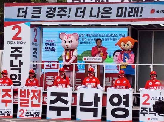 주후보는 또 “미래자동차 혁신벨트와 혁신원자력 연구단지 조성 등을 통해 질좋은 일자리를 지속적으로 창출해 사람과 돈이 몰리고 일자리가 늘어나는 경주를 건설하는데 온 힘을 기울이겠다”고 말했다.