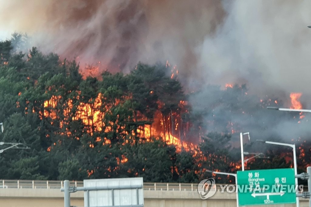 산림청은 이날 오후 4시 30분을 기준으로 현장에 산불 2단계를 발령하고 울진과 주변지역 동원 가능 진화인력을 100% 동원해 진화작업을 벌이고 있다.