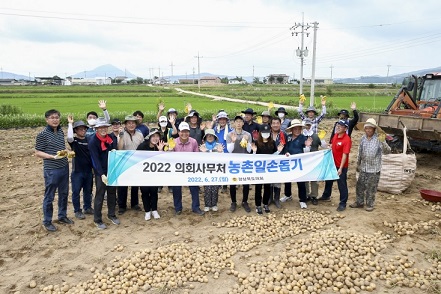 경북도의회사무처 직원 20여명이 6월 27일 예천군 풍양면 낙상리 소재 감자 농가를 방문해 일손을 보탰다.