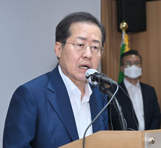 | 홍준표 대구시장이 5일 대구시청 브리핑룸에서 취임 후 첫 기자회견을 하고 있다. /사진 = 대구시 제공 |