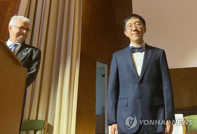 5일(현지시간) 핀란드 헬싱키 알토대학교에서 허준이 프린스턴대 교수 겸 한국 고등과학원 석학교수가 '수학 노벨상' 필즈상을 받기 위해 대기해 있다.연합뉴스