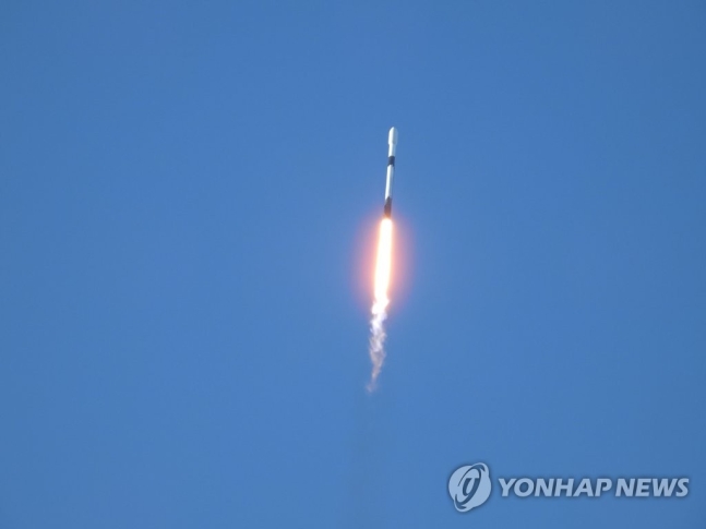 | 5일 오전 8시 8분 미국 플로리다 케이프커내버럴 미우주군기지 40번 발사장에서 다누리를 탑재한 팰컨 9 발사체가 발사됐다.[미국 플로리다 케이프커네버럴. 공동취재기자단]연합뉴스 |