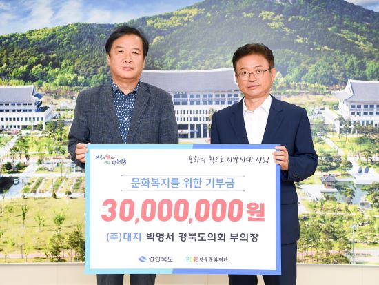 박영서 경북도의회 부의장은 지난 5일 도청에서 지역민의 문화복지 향상과 예술인의 창작활동 지원을 위한 기부금 3000만원을 전달했다.