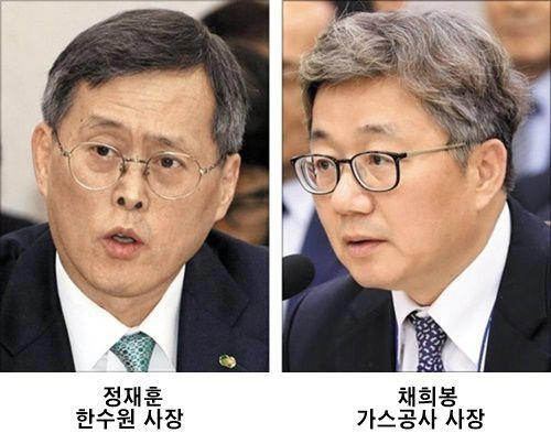 에너지 업계에 따르면 정재훈 한국수력원자력 사장과 채희봉 한국가스공사 사장은 9일 현재 당초 임기를 각각 4개월, 1개월 넘겨 자리를 지키고 있다. 2018년 4월 취임한 정 사장은 지난해 3년 임기를 마친 뒤 연임 형식으로 추가된 1년 임기도 지난 4월 4일 끝났다. 청와대 산업정책비서관을 거쳐 2019년 7월 가스공사로 부임한 채 사장은 지난달 8일 임기를 마쳤다. 각각 4년, 3년이라는 법적으로 보장된 임기를 끝냈지만, 여전히 사장 자리를 지키고 있는 것이다.
