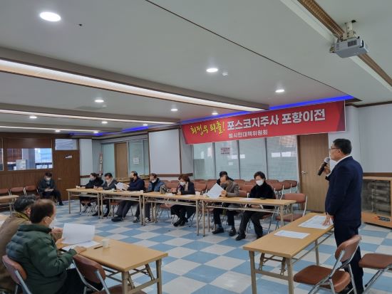 포스코 지주사·미래기술연구원 포항 이전 범시민대책위원회(이하 범대위, 위원장 강창호)는 4일 오전 포항시 남구 해도동 향군회관에서 범대위 집행위원 회의를 개최했다.