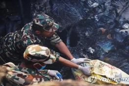 (AFP=연합뉴스) 네팔 구조대원들이 15일(현지시간) 항공기 추락 사고 현장에서 구조 작업을 펼치고 있다. 연합뉴스