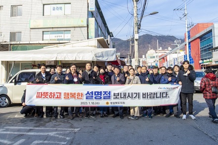 이날 설맞이 장보기 행사는 코로나19 등의 여파로 장기적 경기침체를 겪고 있는 전통시장에 활력을 불어넣고, 상인들에게 힘을 북돋아 주고자 하는 취지에서 마련됐다.