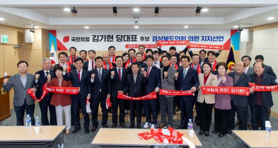 경북도의회 국민의 힘 소속 도의원 55명은 1일 경북도의회 지하1층 다목적실에서 국민의 힘 당대표 선거에 출사표를 던진 김기현 후보를 적극 지지한다고 선언했다.