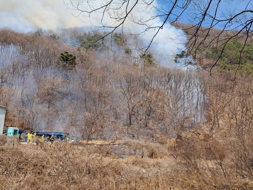 산림과 소방 당국은 헬기 7대와 차량 25대, 인력 142명을 투입해 진화에 나서 이날 오후 3시 3분께 주불을 잡았다.