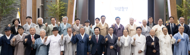 | 30일 안동에서 열린 '2023 경상북도 유림대회'에 참석한 내빈들이 1부 행사가 끝난 후 기념 촬영을 하고 있다. |