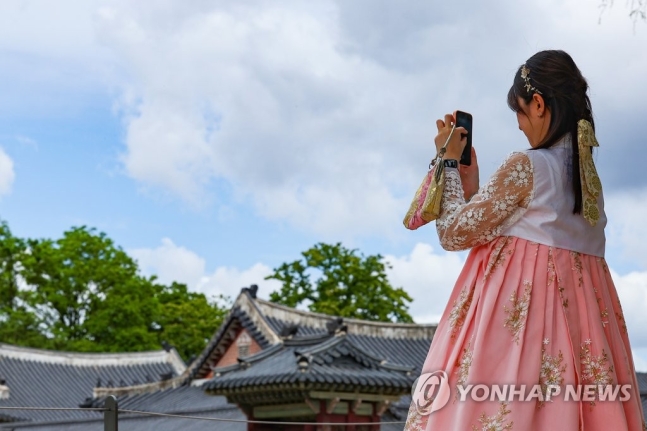 맑은 하늘 찰칵 연휴 마지막 날인 29일 오후 시민들이 서울 종로구 경복궁에서 맑게 갠 날씨를 즐기며 사진을 찍고 있다. 연합뉴스 |
