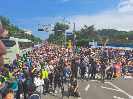 | 지난달 15일 범대위 주최 ‘범대위 활동 시민 보고대회 및 최정우 퇴진 포항시민 총궐기대회’가 5천여명의 포항시민들이 참여한 가운데 포항 포스코 본사 앞에서 열렸다./사진=범대위 제공 |