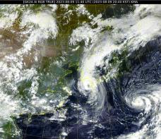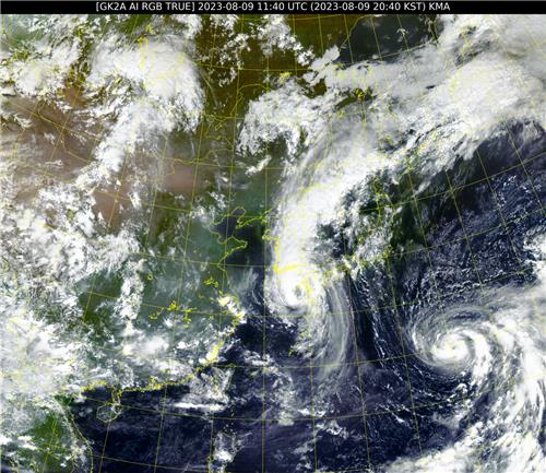 9일 오후 8시 40분 카눈과 한반도 주변 위성 영상./국가기상위성센터 제공.