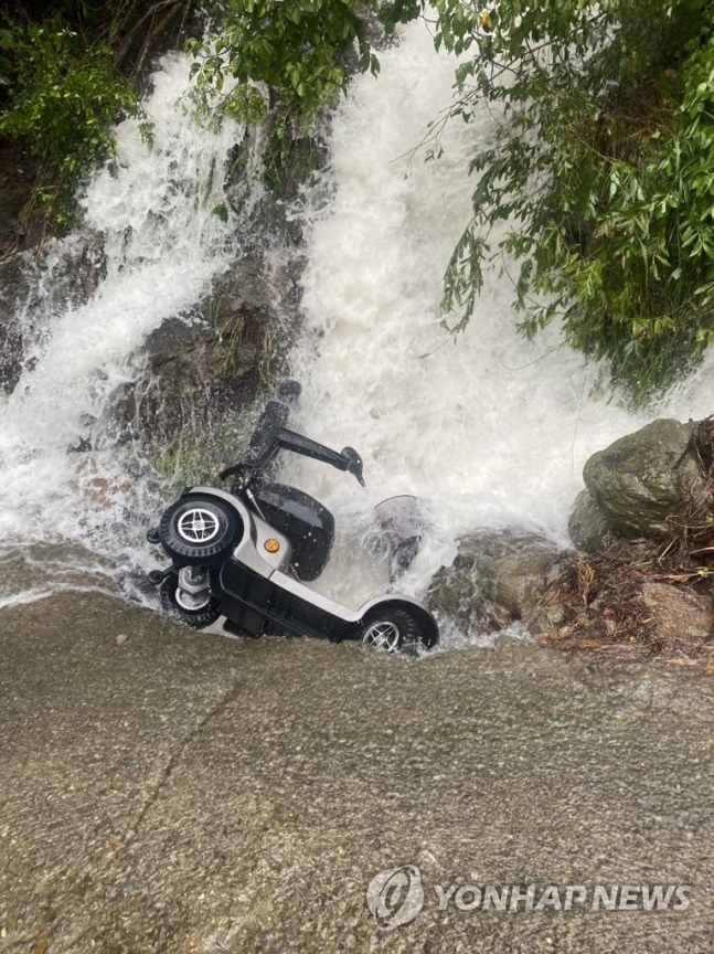 A씨는 계곡으로 이어지는 도랑에 빠지면서 불어난 물에 휩쓸려 실종된 것으로 추정됐다. 그의 전동휠체어는 도랑 부근에서 발견됐다.
