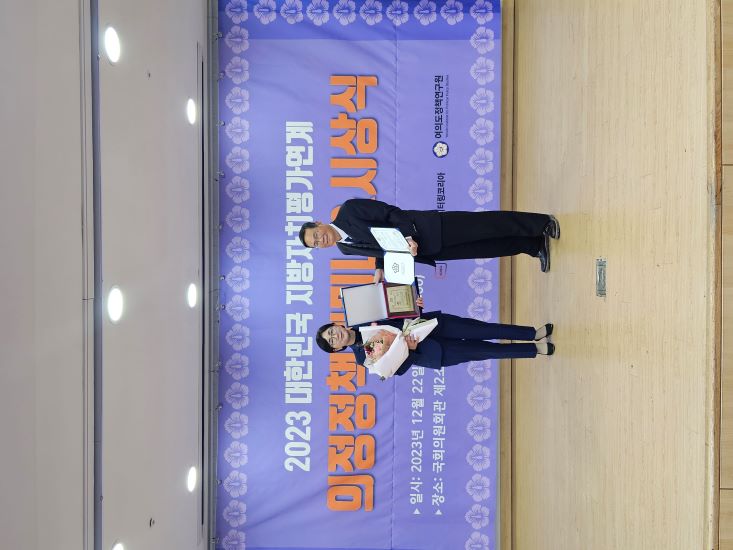 여의도정책연구원에서 주관하고 공익기구 모니터링코리아, (사)한국기업기술가치평가협회에서 평가를 진행한 ‘2023 대한민국 지방자치평가 의정정책대상’은 지방자치제도 활성화 및 주민의 삶의 질 향상, 경쟁력 있는 지역발전 시책 등에 공이 큰 인물에게 수여되는 상이다.