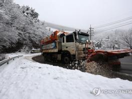 | 20일 강원 동해안과 산간에 최고 50㎝의 폭설이 예고된 가운데 대관령 구간에서 제설차들이 부지런히 눈을 치우고 있다. 연합뉴스 |