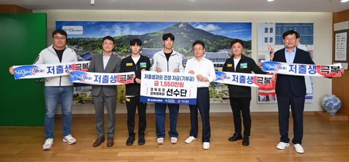 경북도청 및 경북도체육회 소속 직장운동경기부 선수단이 3일 경북도청을 방문해 저출생 극복 성금 1,550만원을 전달했다.