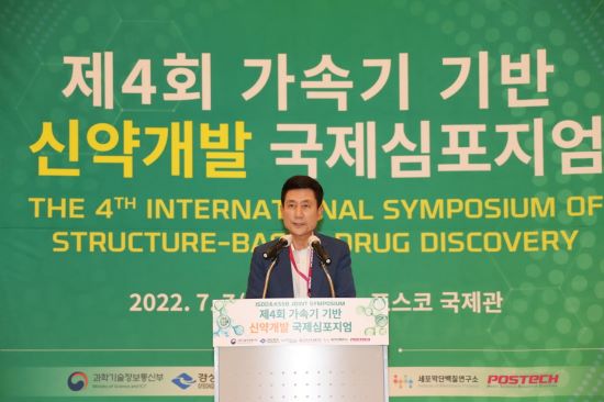 | 지난 2022년 개최된 ‘제4회 가속기 기반 신약 개발 국제심포지엄’에 참석한 이강덕 포항시장/포항시 제공 |