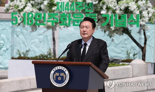 윤석열 대통령이 18일 광주시 북구 국립5·18민주묘지에서 열린 제44주년 5·18민주화운동 기념식에서 기념사를 하고 있다. 2024.5.18 [대통령실통신사진기자단]