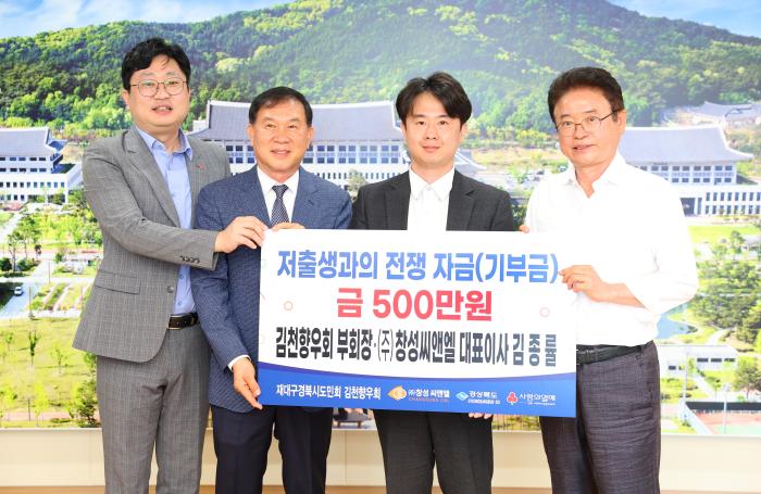 재대구경북시도민회 김천향우회에서 부회장을 맡고 있는 김종률 대표는 “전쟁보다도 위험한 저출생 문제의 심각성에 공감하여 기부에 동참하게 되었다”며, “이번 기부가 저출생 극복에 조금이나마 도움이 되었으면 좋겠다”고 말했다.