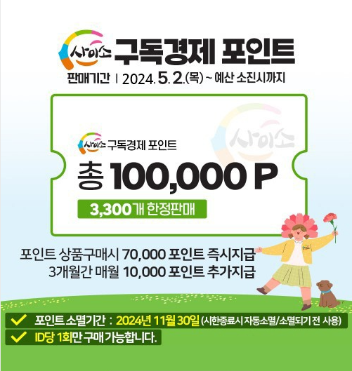 ‘사이소’에서 7만원 상당의 구독경제 포인트 상품을 구매하면 3개월간