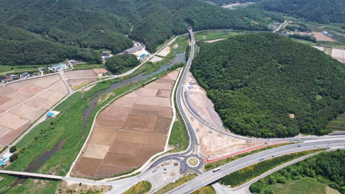 특히 직각에 가까운 곡선 도로를, 축산터널을 설치해 직선화했고 국도 7호선에서 연결 램프*를 설치해 축산항까지 접근성을 높였다.