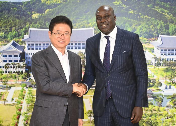 우간다 의회 외교위원회 부위원장 프레드 오폴롯 일행이 3일 경북도-우간다 간 우호 교류 확대 논의를 위해 이철우 경북도지사를 예방했다.