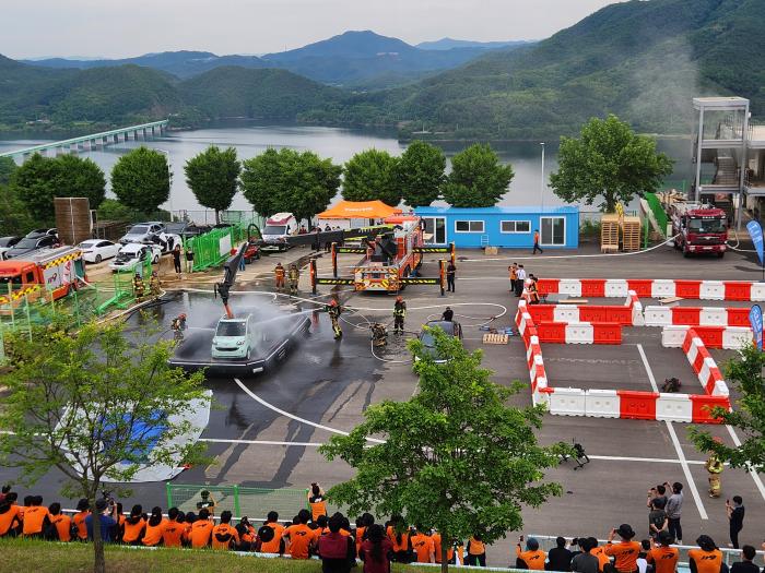 또한, ‘전기차 화재진압 시연' 에서는 질식소화포와 저수조 등 기존 장비 외에 배터리 케이스에 직접 구멍을 뚫어 방수할 수 있는 새로운 장비를 활용한 화재진압을 직접 관람할 기회를 제공해 참여자들로부터 호평을 받았다.