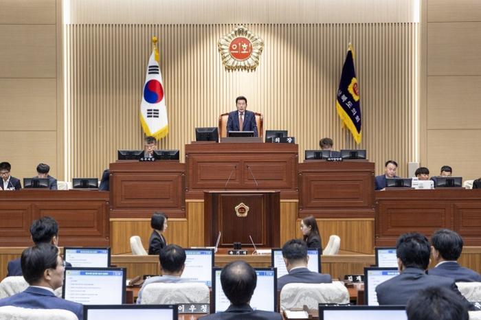 배한철 의장은 개회사를 통해 “도민의 실생활에 도움이 되는 조례 제·개정과 포항·구미 특화단지 유치, 안동·경주·울진 신규 국가 산단 선정 등 경북의 미래 먹거리 확보를 위해 의정역량을 집중해왔다”며, 제12대 도의회의 의정활동에 대한 소회를 밝히는 한편,
