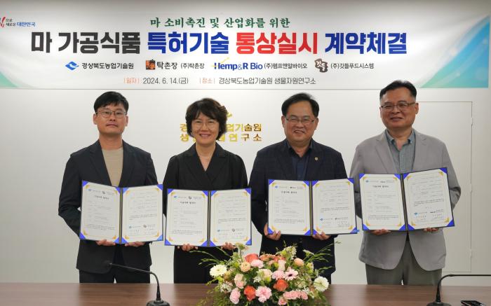 경북도농업기술원은 지난 14일 지역특산물인 안동 마(산약)를 활용한 가공식품 3종을 개발해 지역 가공업체 3곳과 특허 기술 통상실시 협약을 체결했다.