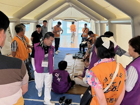 2부는 재난 상황 속 이동 약자 지원방안, 이재민 구호시설 설치, 재난 안전 심리 지원 등의 체험 위주의 실습을 진행하여서 자원봉사자들의 현장 대응력 강화의 기회를 가졌다.