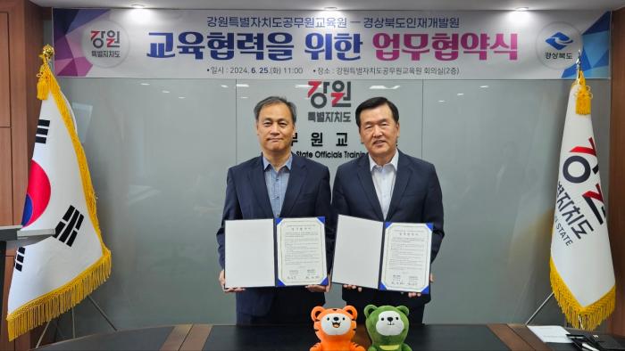 경북도인재개발원은 25일 강원특별자치도공무원교육원 회의실에서 강원특별자치도공무원교육원과 교육 협력을 위한 업무 협약을 체결하고 교육프로그램 공유 등 교류를 확대하기로 했다.