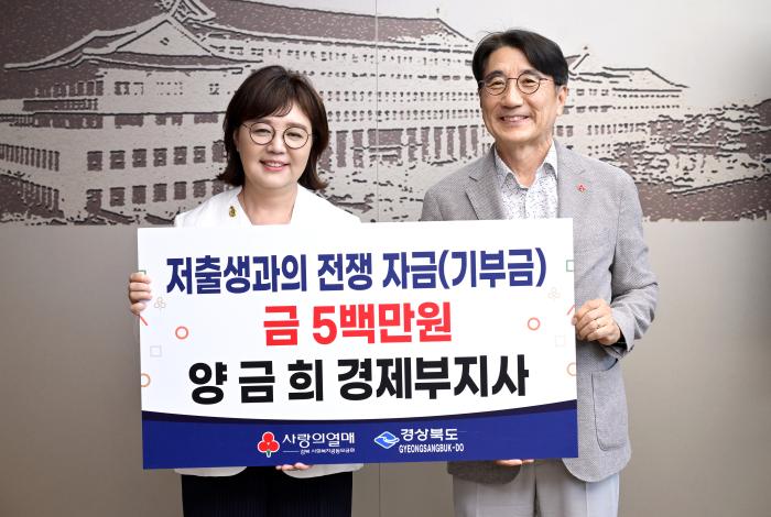 양금희 경제부지사는 25일 저출생 극복을 위한 성금 500만원을 개인 자격으로 경상북도사회복지공동모금회에 전달했다.